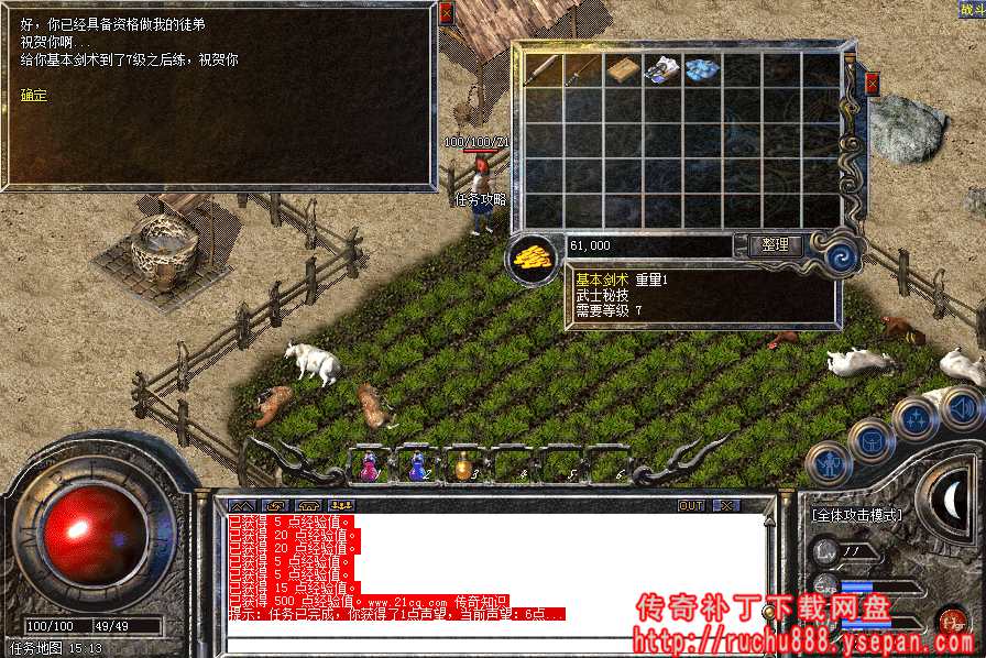 此时如果等级已到达5级,可以直接交付任务,获得武器 乌木剑 1把。
